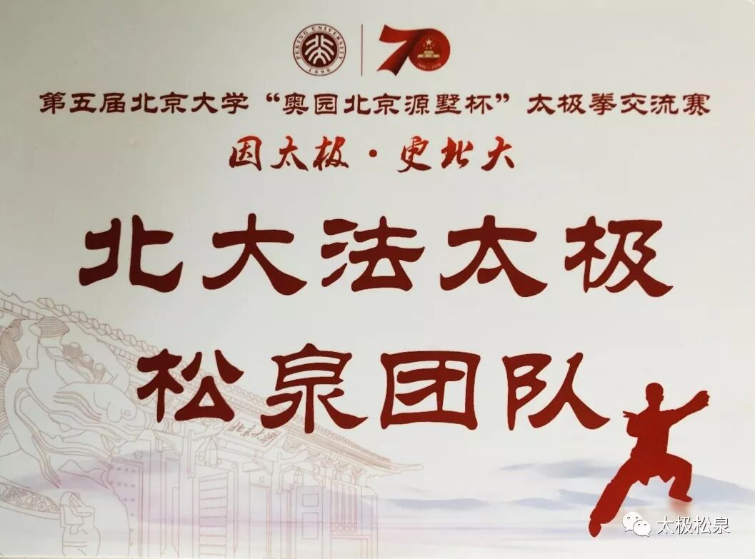 北大法太极松泉团队派出两支队伍参加本次比赛,成绩斐然。两支队伍分别荣获了集体老架一路第一名、第二名的优异成绩,并斩获“最佳表演团队奖”、“最佳运动员”等奖项。