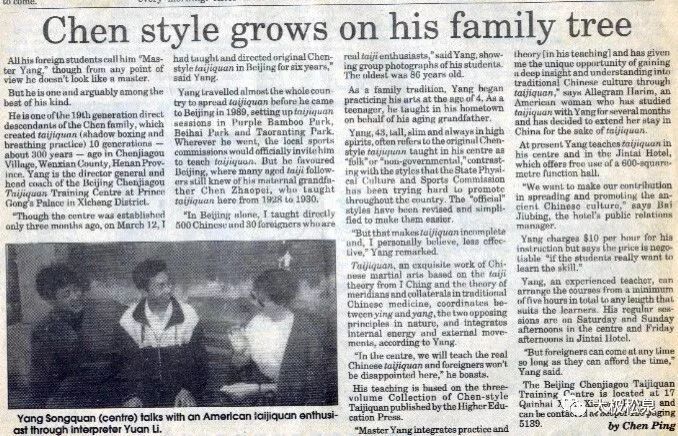 1995年,先生以北京为根据地,正式创立北京陈家沟太极拳培训中心。