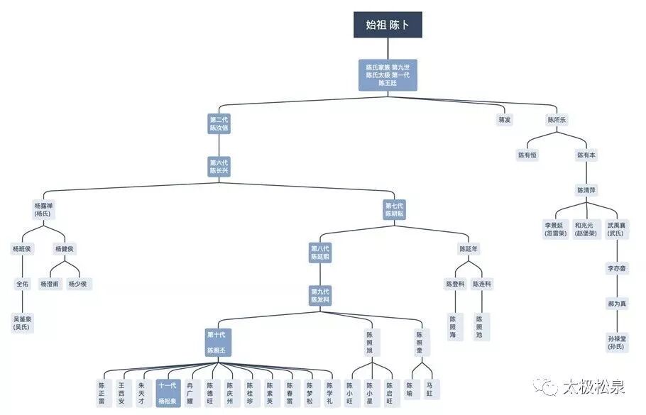 自陈王廷开创陈氏太极以来,陈氏家族世代传习,先后涌现出了多位名闻华夏、威震八方的武林高手和太极拳大师,如十四世陈长兴、十七世陈发科和十八世陈照丕等,皆为著名的太极宗师。