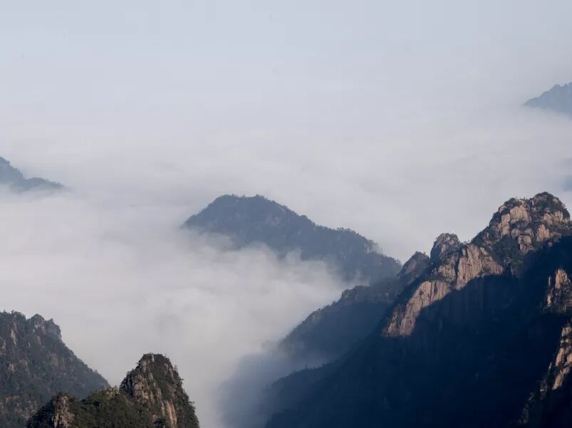 黄山的云海气势磅礴、忽起忽落、时刻变化、螺旋缠绕、阴阳分明,在我们眼前展现一幕幕活着的中国传统古文化。
