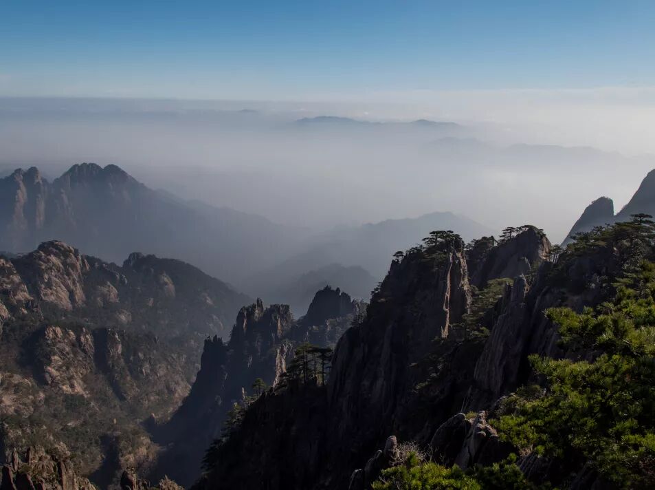 黄山之奇美卓绝,在于云海缥缈、奇松竞秀、怪石嶙峋,远远看去,如同水墨画一般。
