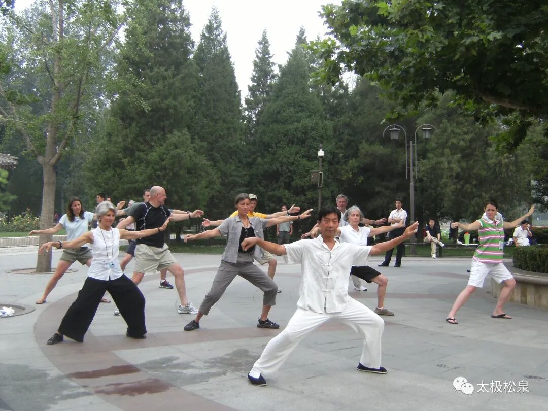 松泉师父在北京团结湖公园教授美国财政部长保尔森全家修炼太极