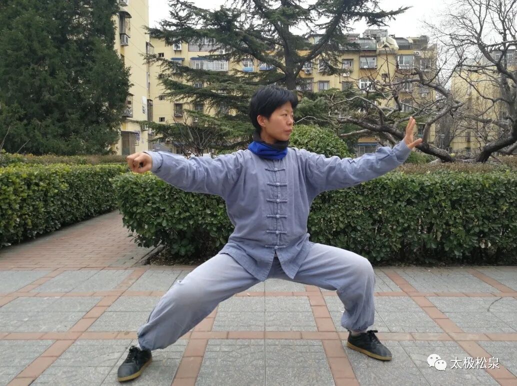 并着重练习太极拳里重要步法,体会重心转换时腰跨的转动。比如:前行(前趟拗步),后退(倒卷弘),侧行(云手)等。