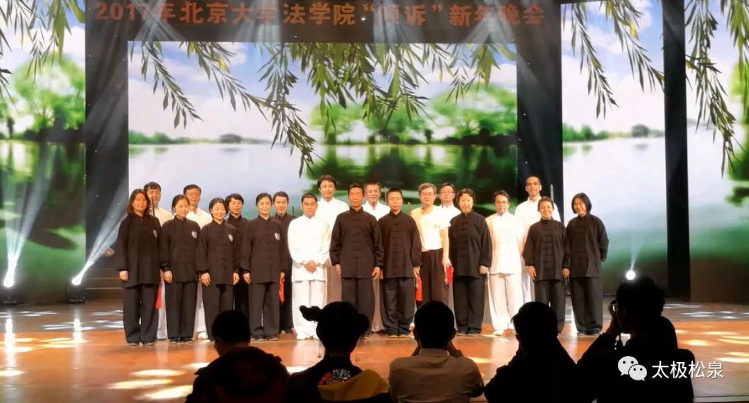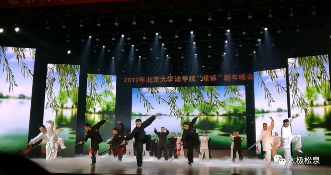 杨松泉老师受邀,携众弟子带领北大学员,在北京大学新年晚会上进行太极技击与养生运动展演,并进行全球直播