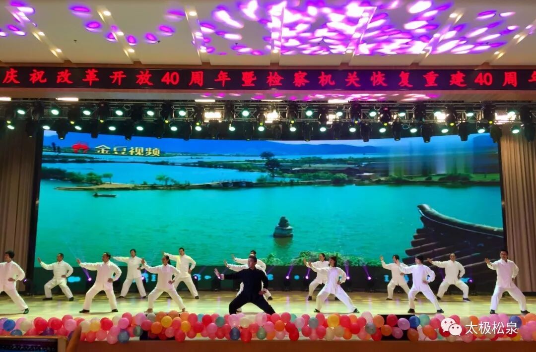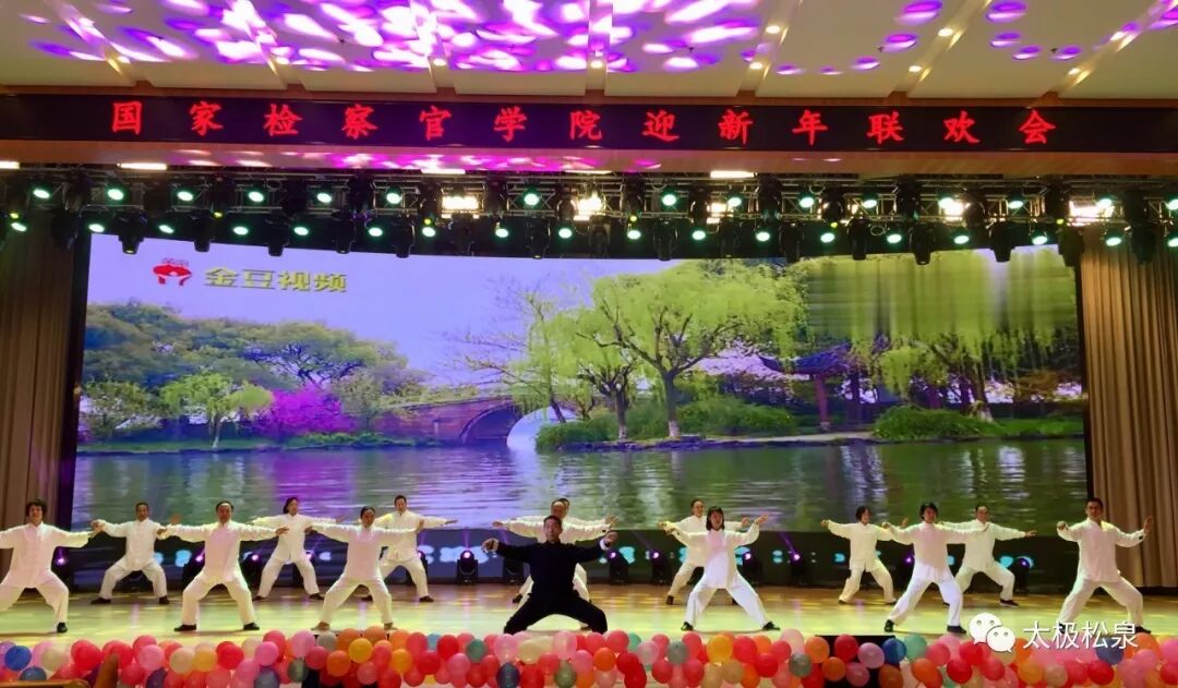 2018年12月,受国家检察官学院院长的邀请,杨松泉老师带领该院学员在新年联欢会上进行太极养生运动展演,五百多名全国各检查机关高级领导现场观看这一盛会,该展演受到高度赞扬