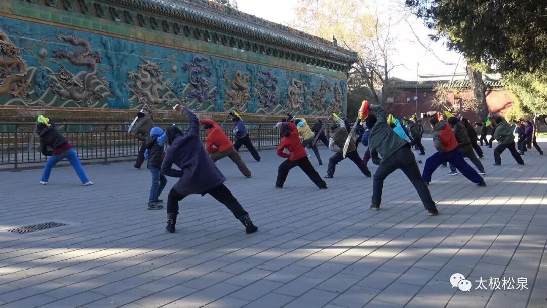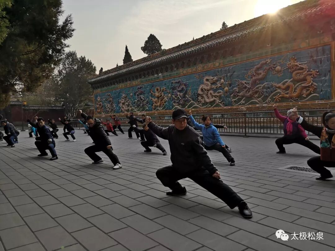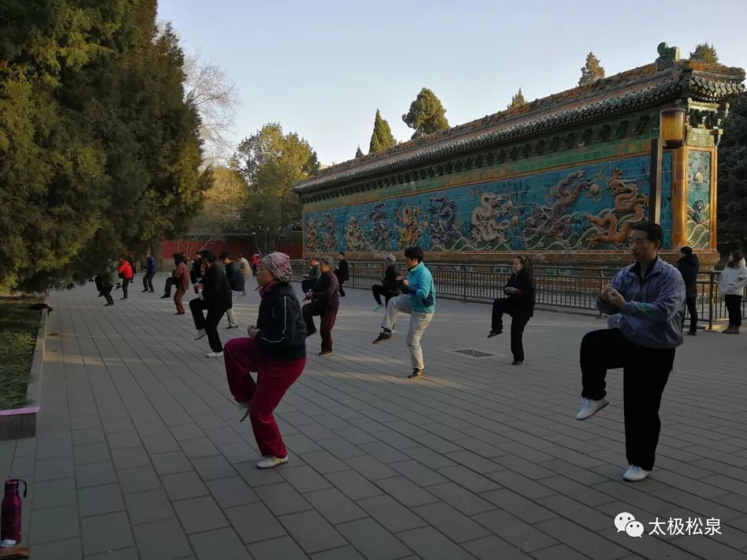 立春当日,杨松泉老师及弟子带领众多学员在北海公园九龙壁练拳,开启新年养生运动新方式