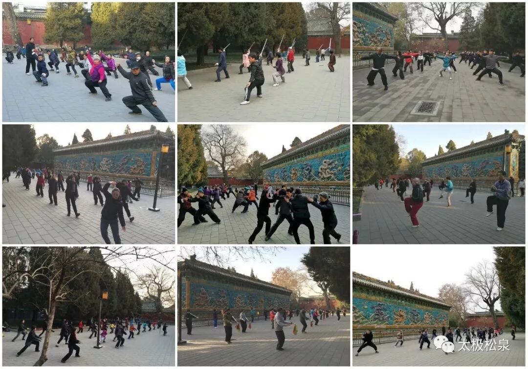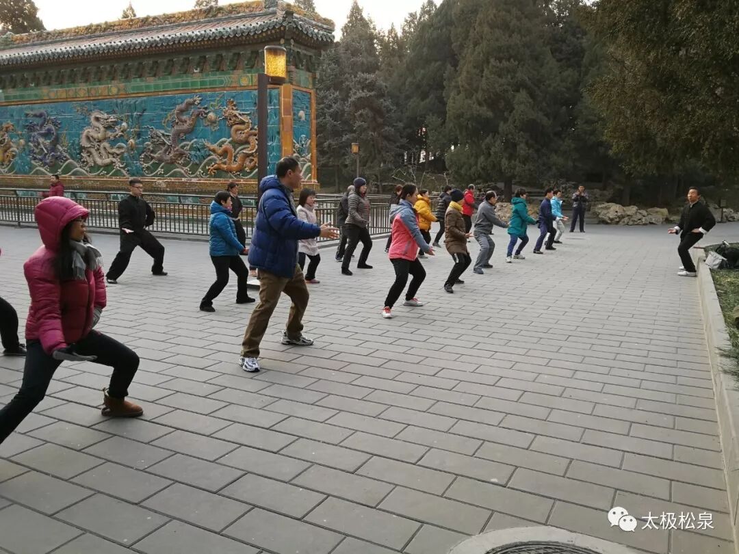 图为冬至、小寒时节,师父携弟子们带领众多学员在北海公园九龙壁练拳